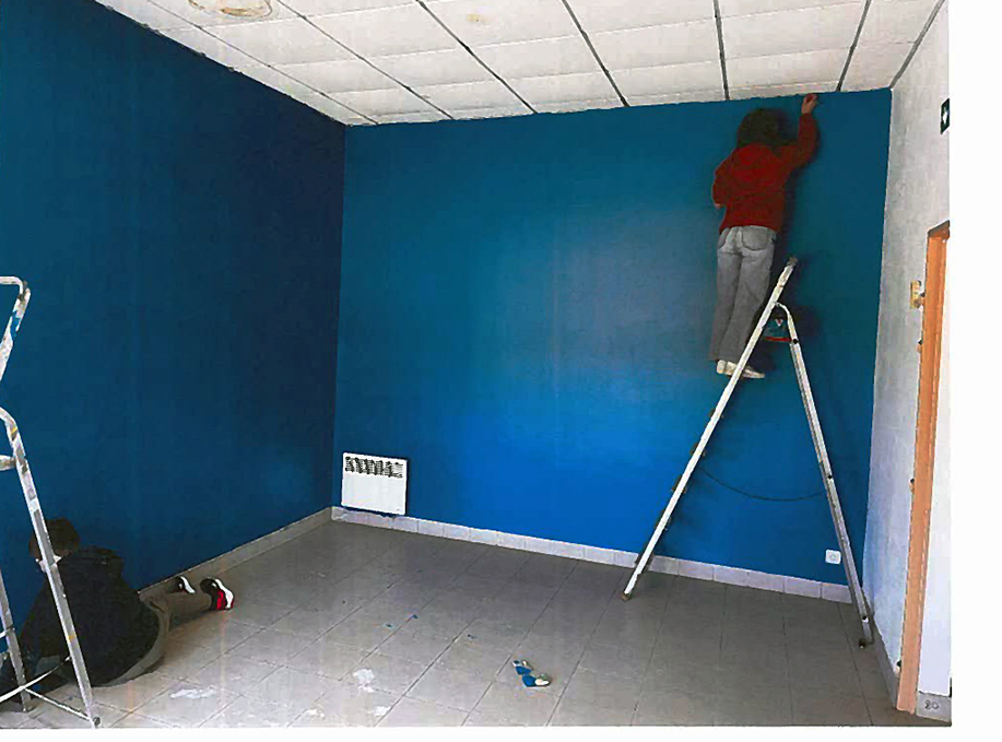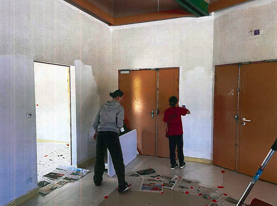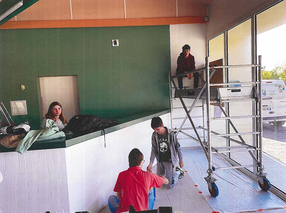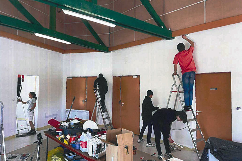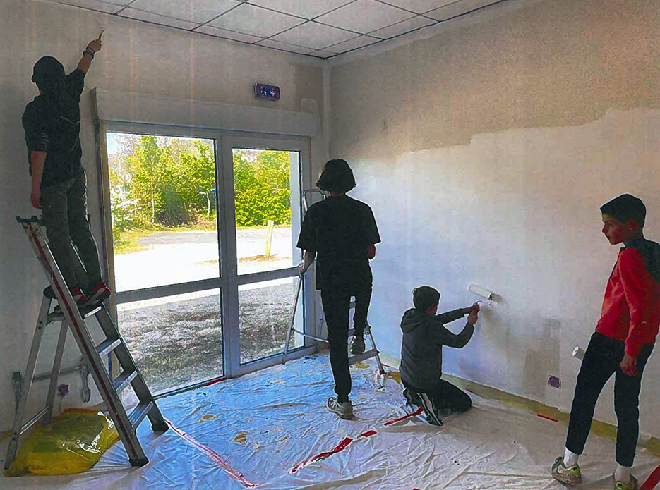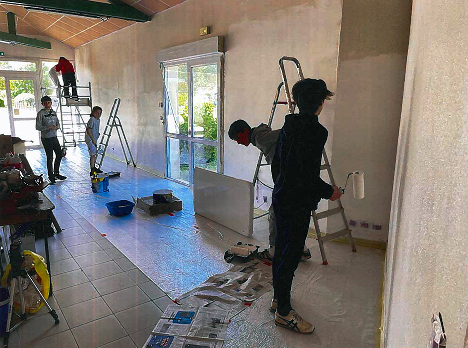 Les jeunes ont ensuite rédigé un dossier de financement et présenté leur projet à l’oral devant un jury en juin 2024. La phase opérationnelle a débuté fin 2024 : désencombrement, travaux de rénovation, peinture, réaménagement, achats de matériel et même création de mobilier en bois de palette.