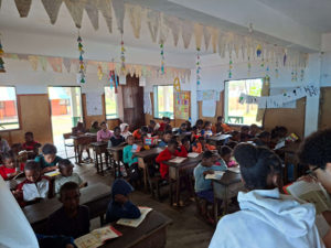En parallèle, les enseignants malgaches ont bénéficié de formations en français, animées par les enseignants présents dans le groupe. Une attention particulière a également été portée à la sensibilisation environnementale, avec la plantation d’une cinquantaine d’arbres aux côtés des enfants, en lien avec les actions de reforestation portées par l’association.